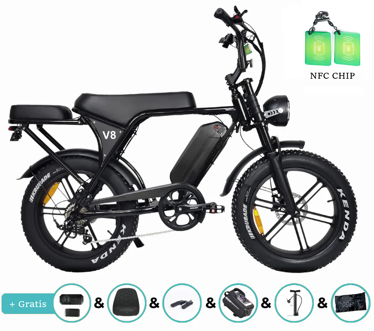 OUXI V8 Fatbike pakket in inhoud: