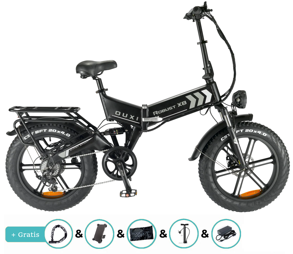 Comfort staat centraal bij de Ouxi X8. De ergonomisch ontworpen zadel en handvatten zorgen voor een comfortabele rijervaring, zelfs tijdens lange ritten. Bovendien zijn de hoogwaardige banden van de fiets ontworpen om grip te bieden en schokken te absorberen, waardoor je kunt genieten van een soepele en stabiele rit, ongeacht de ondergrond.